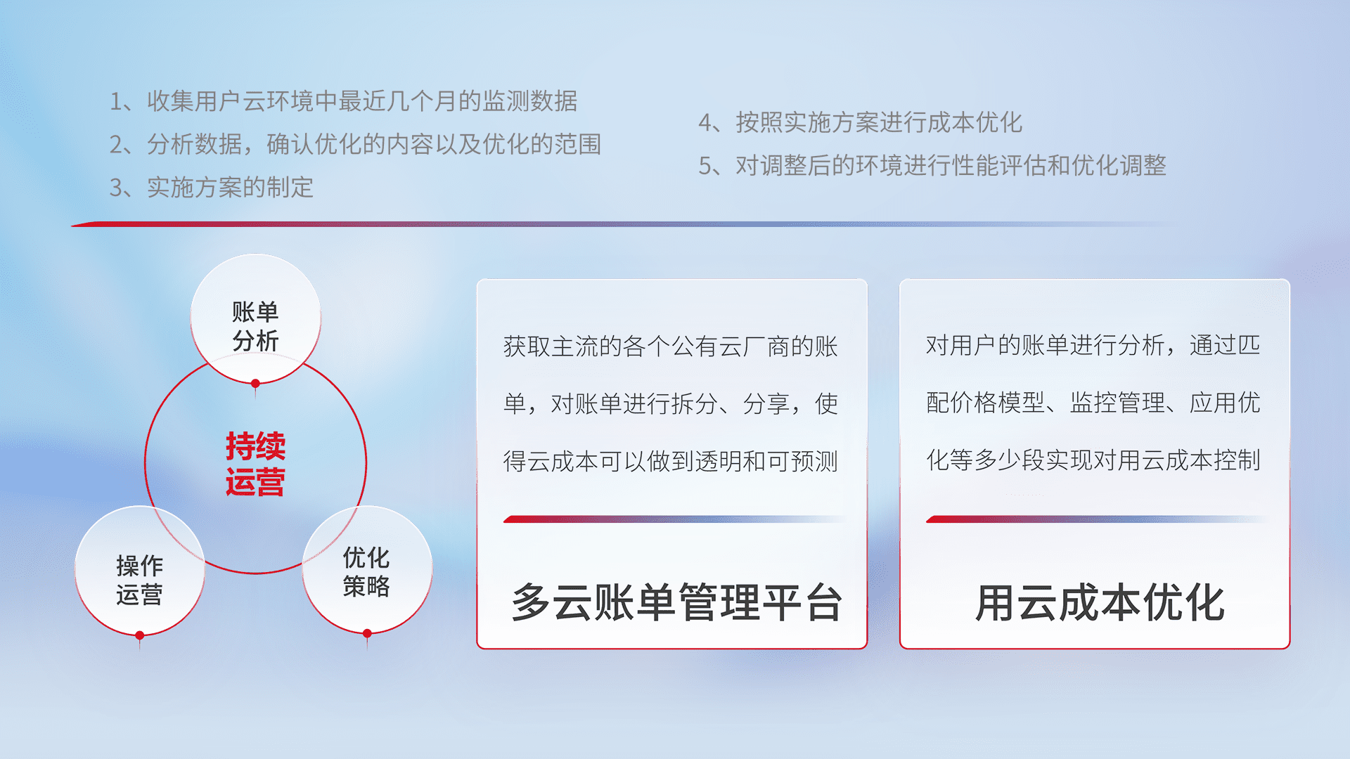 监控业务系统资源开销,,,,对资源的消耗精确计量,,,,实现费用的透明化管理,,不断提升资源使用率,,,调整资源购买方式,,,降低资源费用成本,,,用云成本可预测、、、用云费用可优化,,,云资源配额有据可依。。